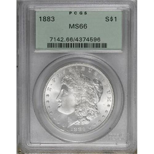 <B>1883 $1 MS66 PCGS.</B></I> . PCGS Population (694/58). NGC Census: (689/103). Mintage: 12,291,039. Numismedia Wsl. Price for NGC/PCGS coin in MS66: $380. (#7142)<BR><BR><B>Coin Engraver:</B> George T. Morgan<BR><BR><b>Shipping:</b> Coins & Currency (<a target="_blank" href="http://www.heritageauctions.com/common/shipping.php">view shipping information</a>)