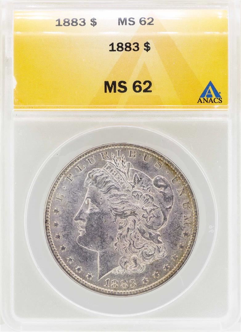 One 1883 $1 Morgan Silver Dollar Coin ANACS MS62. ANACS Certified.