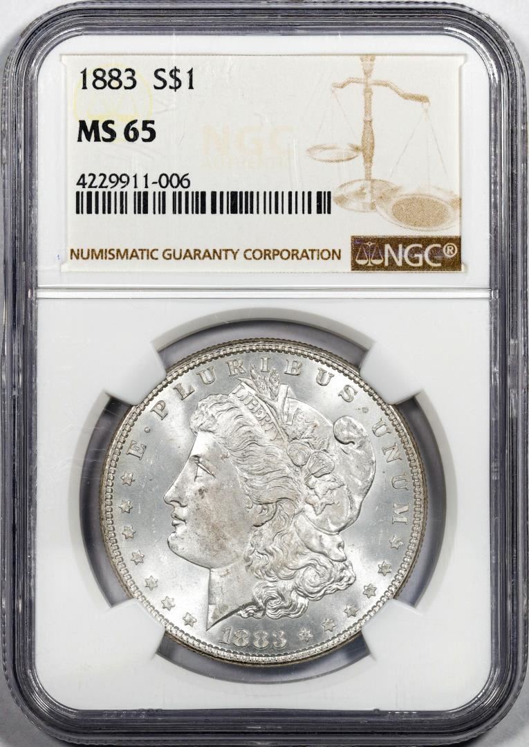 One 1883 $1 Morgan Silver Dollar Coin NGC MS65.
