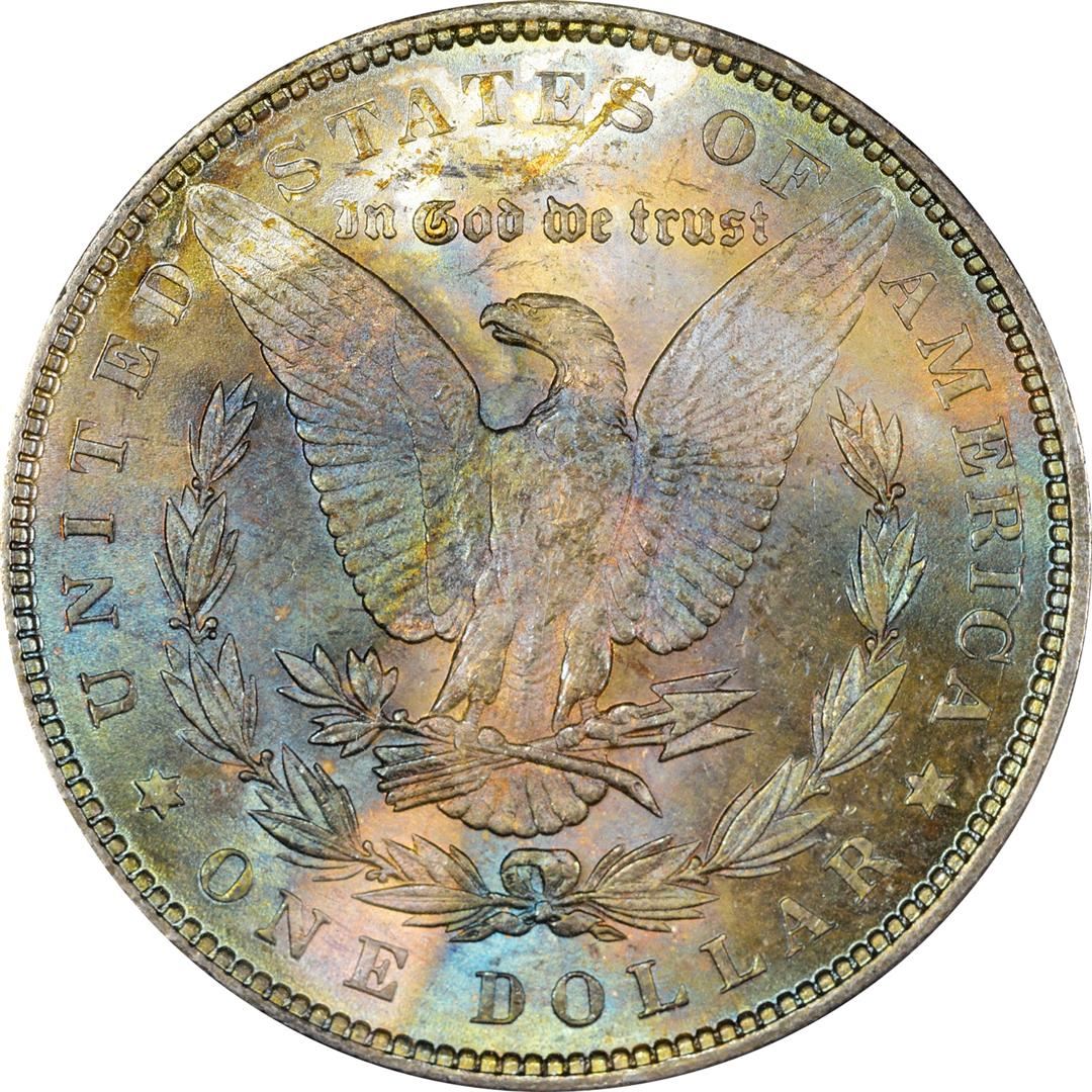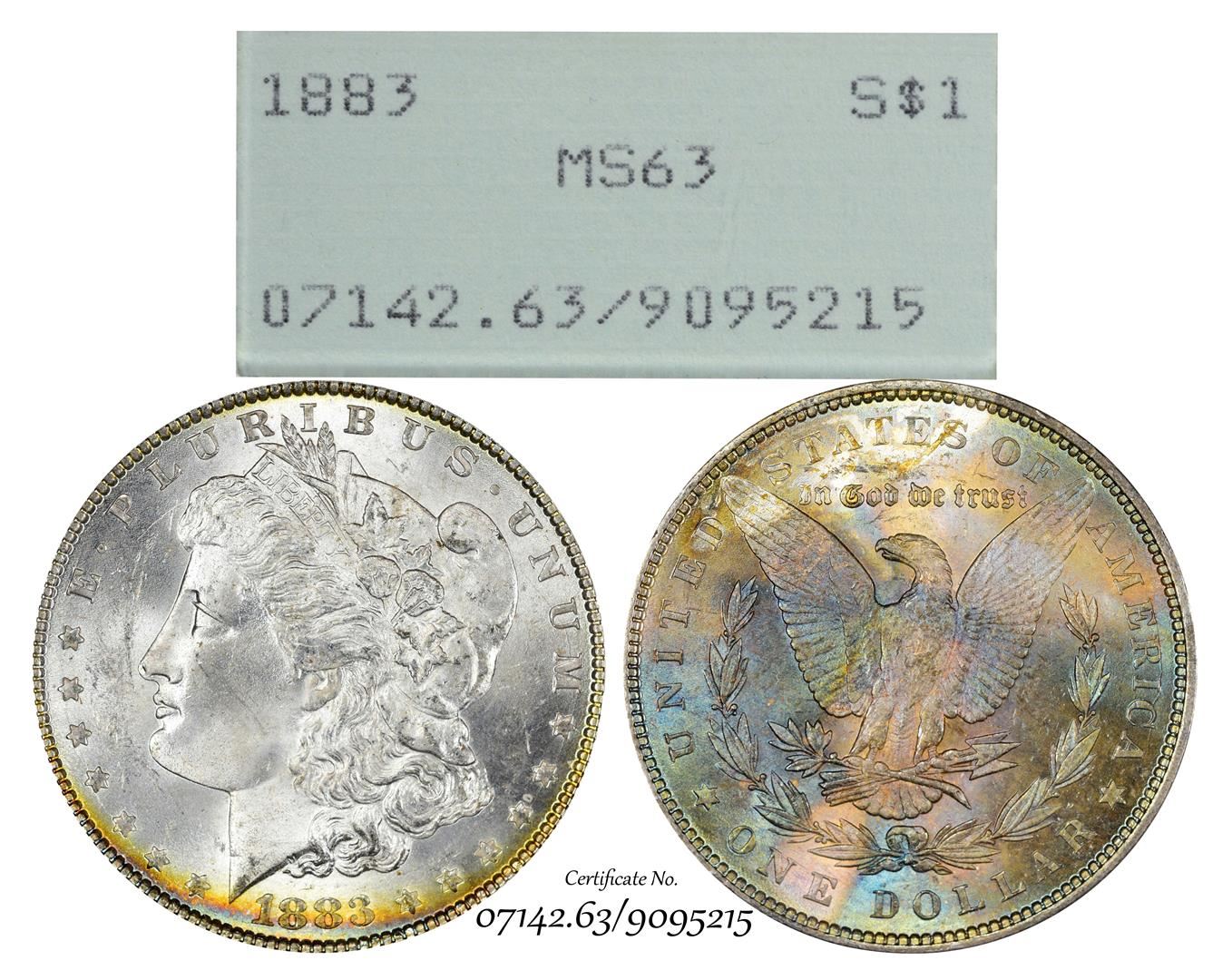 1883 $1 Morgan Silver Dollar Coin PCGS MS63 Green Rattler Amazing Toning
