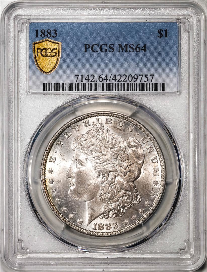 One 1883 $1 Morgan Silver Dollar Coin PCGS MS64. PCGS Graded.
