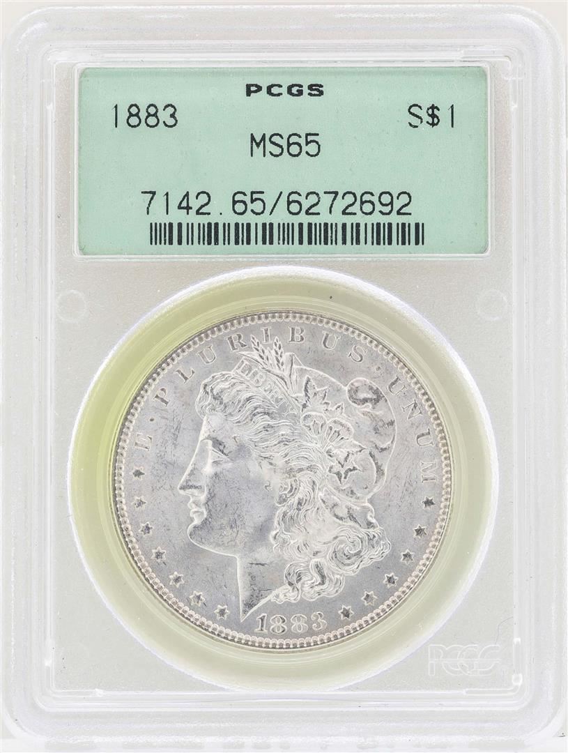 One 1883 $1 Morgan Silver Dollar Coin PCGS MS65. PCGS Graded.