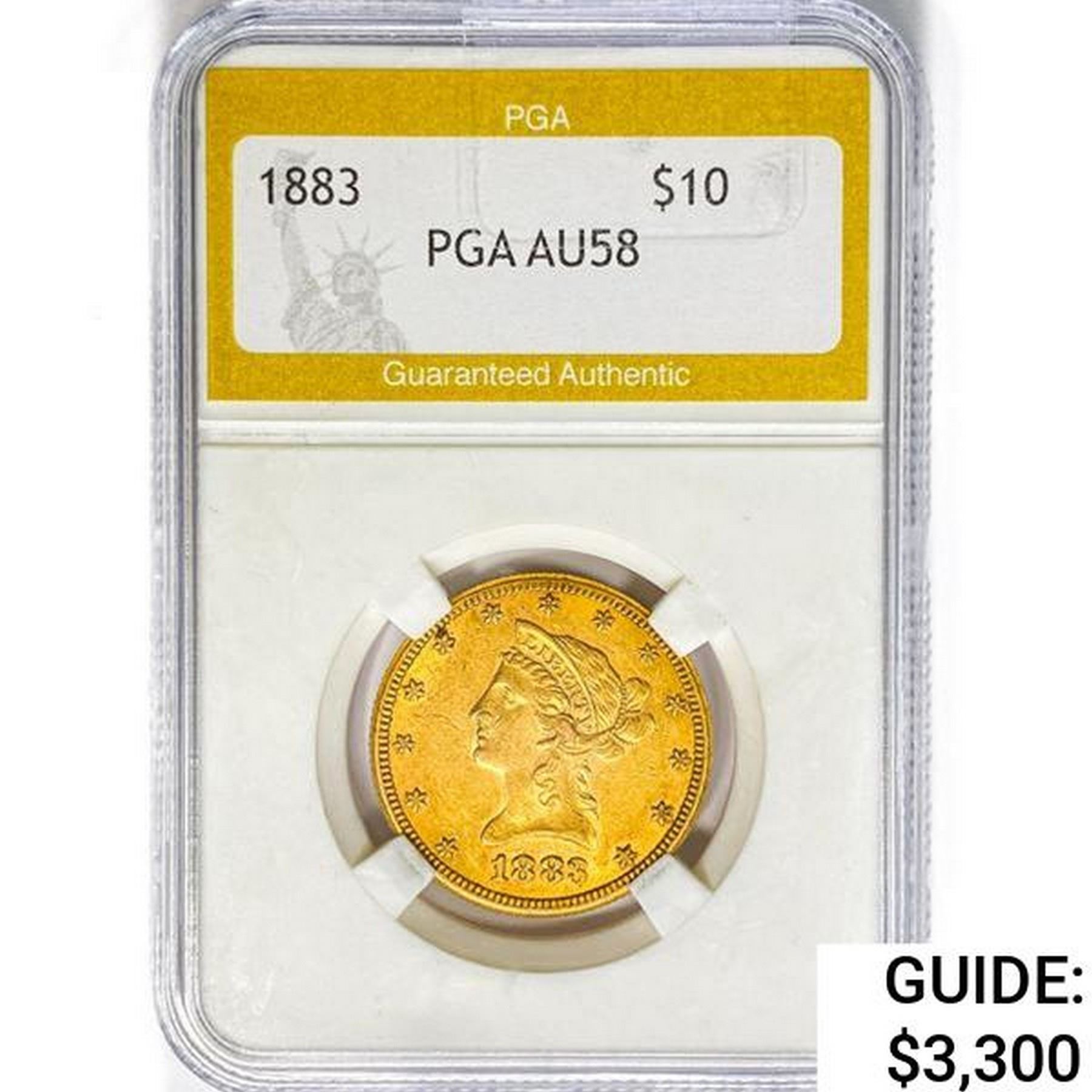 1883 $10 Gold Eagle PGA AU58