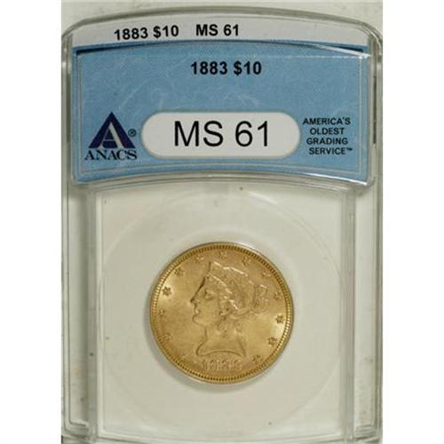 <B>1883 $10 MS61 ANACS.</B></I> NGC Census: (405/392). PCGS Population (217/309). Mintage: 208,740. Numismedia Wsl. Price for NGC/PCGS coin in MS61: $380. (#8699)<BR><BR><b>Shipping:</b> Coins & Currency (<a target="_blank" href="http://www.heritageauctions.com/common/shipping.php">view shipping information</a>)
