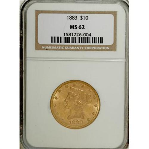 <B>1883 $10 MS62 NGC.</B></I> NGC Census: (319/82). PCGS Population (242/73). Mintage: 208,740. Numismedia Wsl. Price for NGC/PCGS coin in MS62: $440. (#8699)<BR><BR><B>Coin Engraver:</B> Christian Gobrecht<BR><BR><b>Shipping:</b> Coins & Currency (<a target="_blank" href="http://www.heritageauctions.com/common/shipping.php">view shipping information</a>)