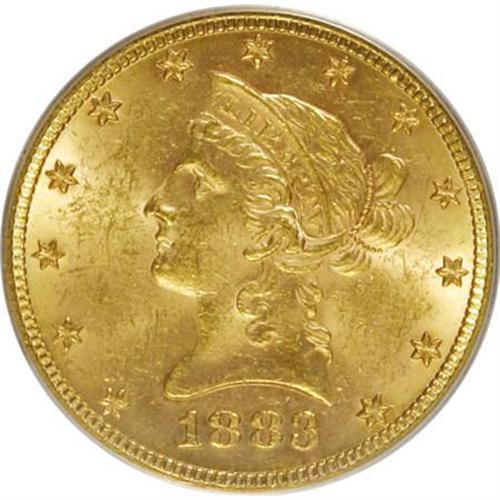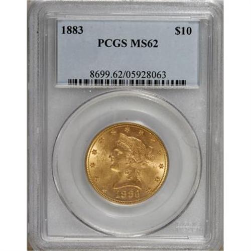 <B>1883 $10 MS62 PCGS.</B></I> PCGS Population (236/73). NGC Census: (312/82). Mintage: 208,740. Numismedia Wsl. Price for NGC/PCGS coin in MS62: $440. (#8699)<BR><BR><B>Coin Engraver:</B> Christian Gobrecht<BR><BR><b>Shipping:</b> Coins & Currency (<a target="_blank" href="http://www.heritageauctions.com/common/shipping.php">view shipping information</a>\)