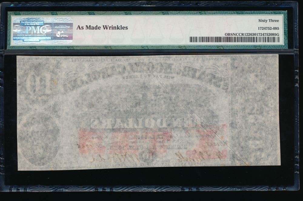 One 1883 $10 North Carolina Obsolete Note PMG 63.