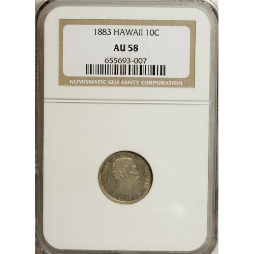 1883 10C Hawaii Ten Cents AU58 NGC. Both centers are s