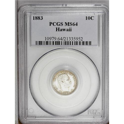 1883 10C Hawaii Ten Cents MS64 PCGS. Well struck and s 1883[10C] Hawaii Ten Cents MS64 PCGS.