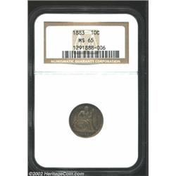 1883 10C MS65 NGC. Fully struck and highly lustrous with very attractive, multicolored toning over e