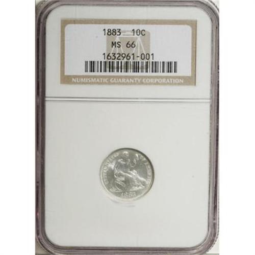 <B>1883 10C MS66 NGC.</B></I> A brilliant and lustrous Seated type coin that has a pleasing strike and attractive preservation. Population: 33 in 66, 22 finer (8/07).<BR><BR><B>Coin Engraver:</B> Christian Gobrecht<BR><BR><b>Shipping:</b> Coins & Currency (<a target="_blank" href="http://www.heritageauctions.com/common/shipping.php">view shipping information</a>)