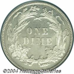<table><tr><td><table><tr><td>1883 10C PR66 Cameo PCGS. Not only is this glittering-white representative in a technically Superb state of preservation, but its eye appeal is absolutely top notch. Only a tiny percentage of the 1,039 proofs issued could possibly survive this nice. Population: 4 in 66, 2 finer (3/04). <BR><BR><B>Important notice:</B> Heritage usually auctions material at the rate of 200-250 lots per hour. On some occasions eBay Live bid software or the Internet may not be able to keep up with the pace of the auction. We recommend placing a realistic absentee bid now as insurance to avoid disappointment. Occasionally the auctioneer may eliminate or reject an eBay Live bid, and the auctioneer may also reopen a lot after the close of the eBay live bidding (usually because we missed an audience bid), and may reject your bid even if it shows you as the winning bidder. By bidding via eBay Live, you agree that Heritage may award the lot to another bidder at its sole discretion under the circumstances described above or any other reasonable circumstances. Since eBay bids are not shown to us until we open the lot on the floor, we treat those bids just like floor bids. In most cases the floor responds before the eBay bid is presented to us, due to Internet lag time, so for consistency we have made it a policy that floor bids are always considered first over tie eBay live bids. Also please note that all Heritage lots purchased through eBay Live carry a 20% Buyer's Premium. Please make sure you read the Terms and Conditions before you bid. <BR><BR><B>IMPORTANT ANNOUNCEMENT ABOUT RESERVES:</B> Heritage now divulges all reserves on its web site 7 days before every auction. If you want to know whether the reserve on this lot has been met, and if not, what the reserve amount is, please visit this lot page on the HeritageCoin.com web site, or email: bid@HeritageGalleries.com </span></font></td></tr></table></td></tr></table>