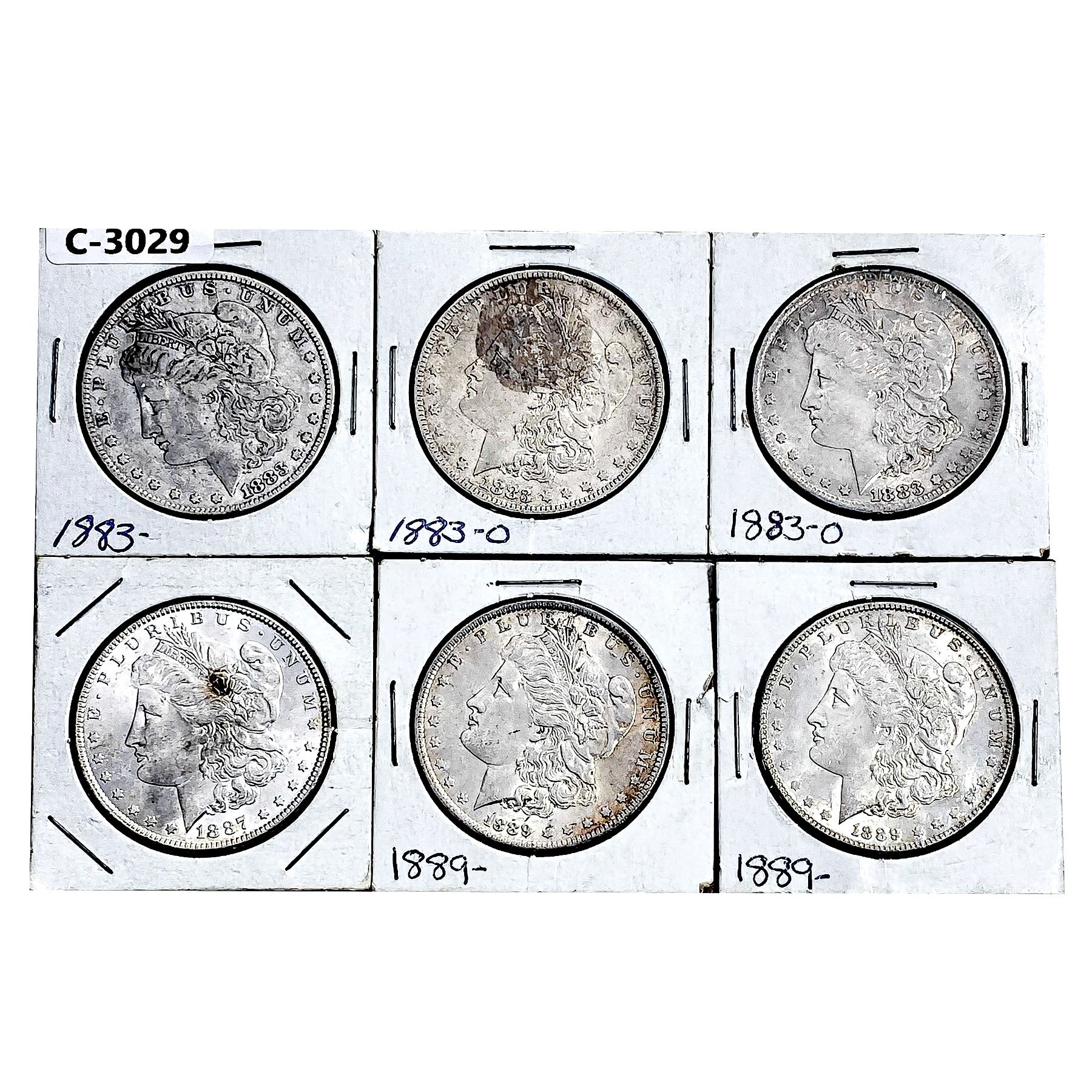 1883-1889 Morgan Silver Dollars; Diff. Mints [6 Co