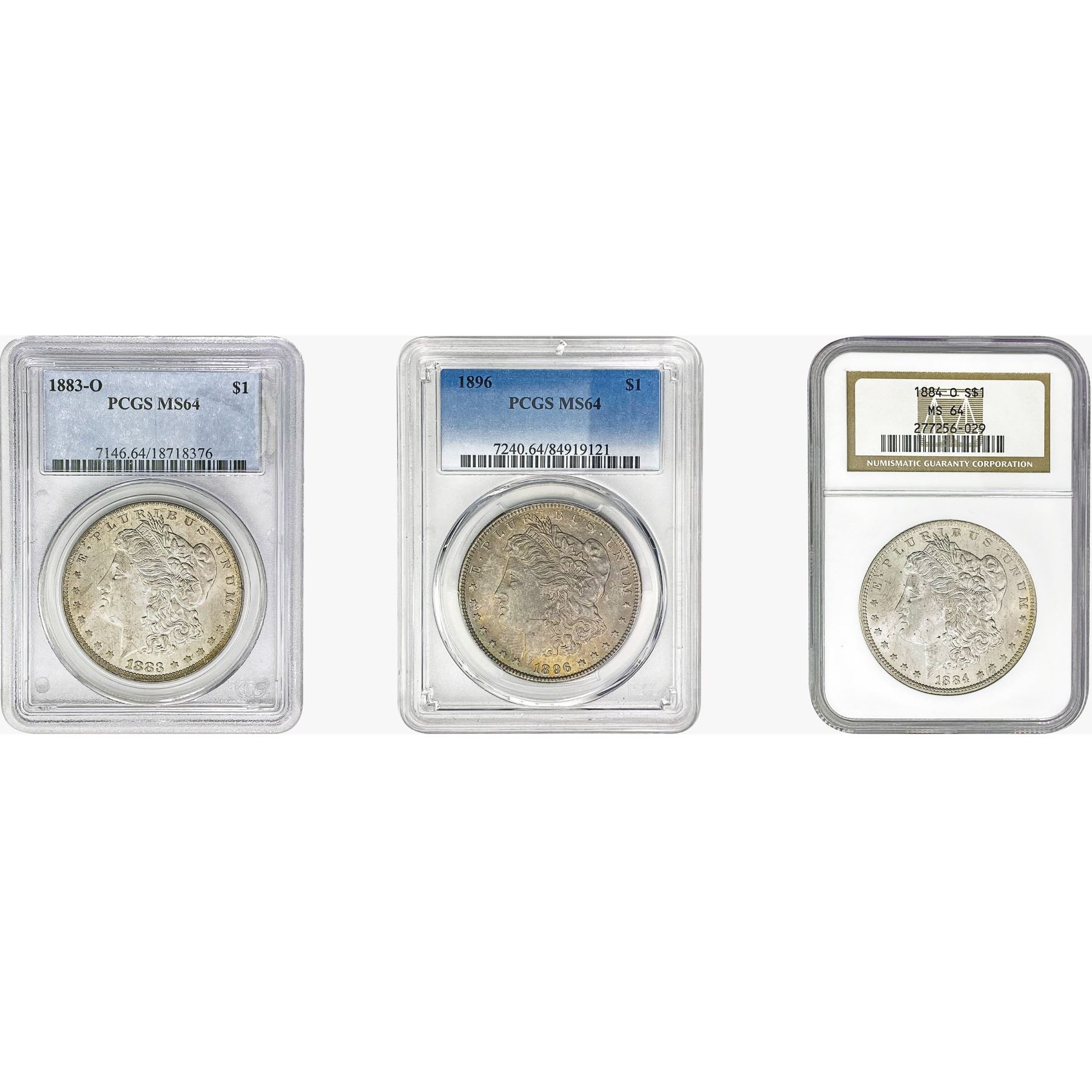 1883-1896 Morgan Silver Dollar Lot [3 Coins] PCGS/NGC MS64
