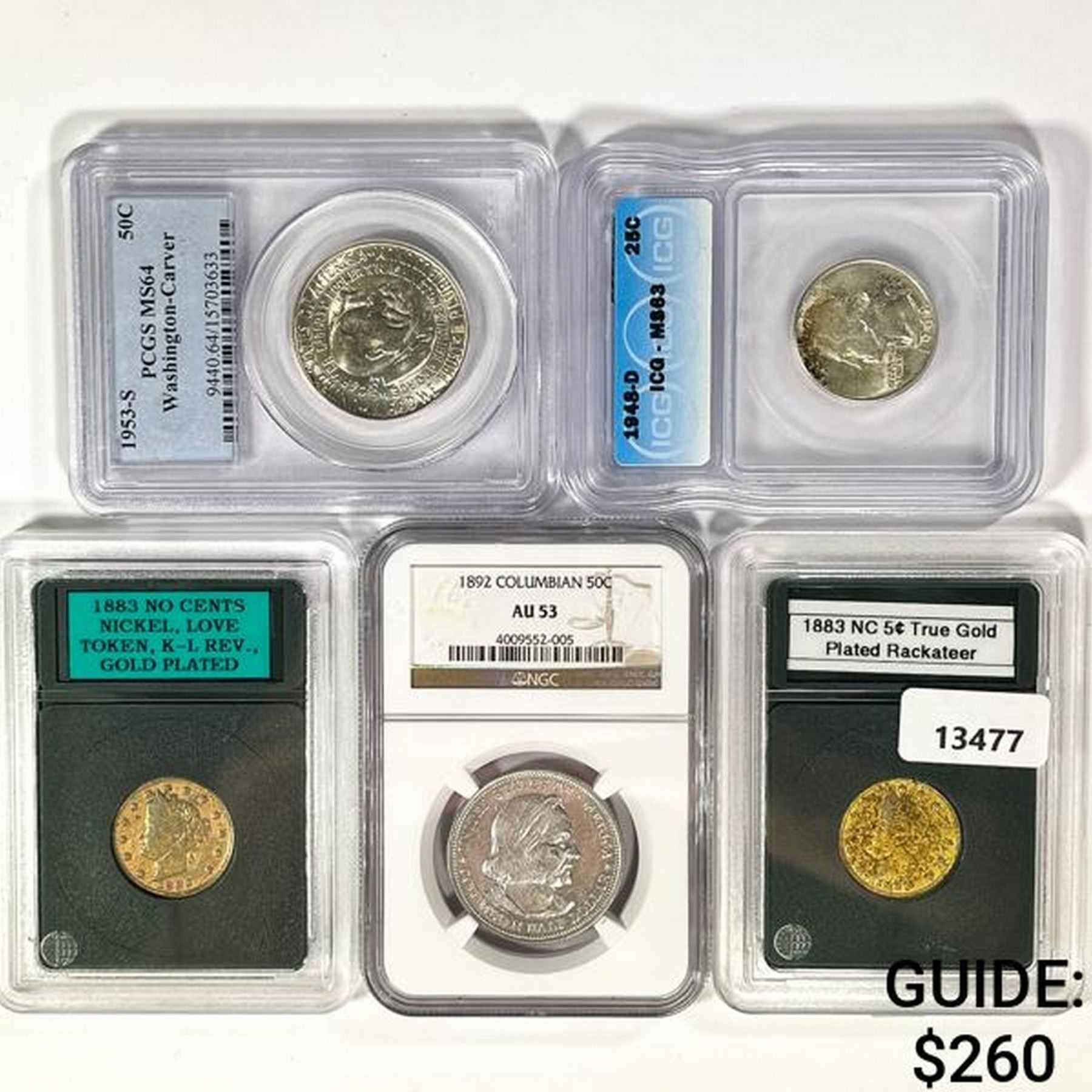 1883-1953 Set (5) 2 5C Gold Plated, 25C, 2 50C AU