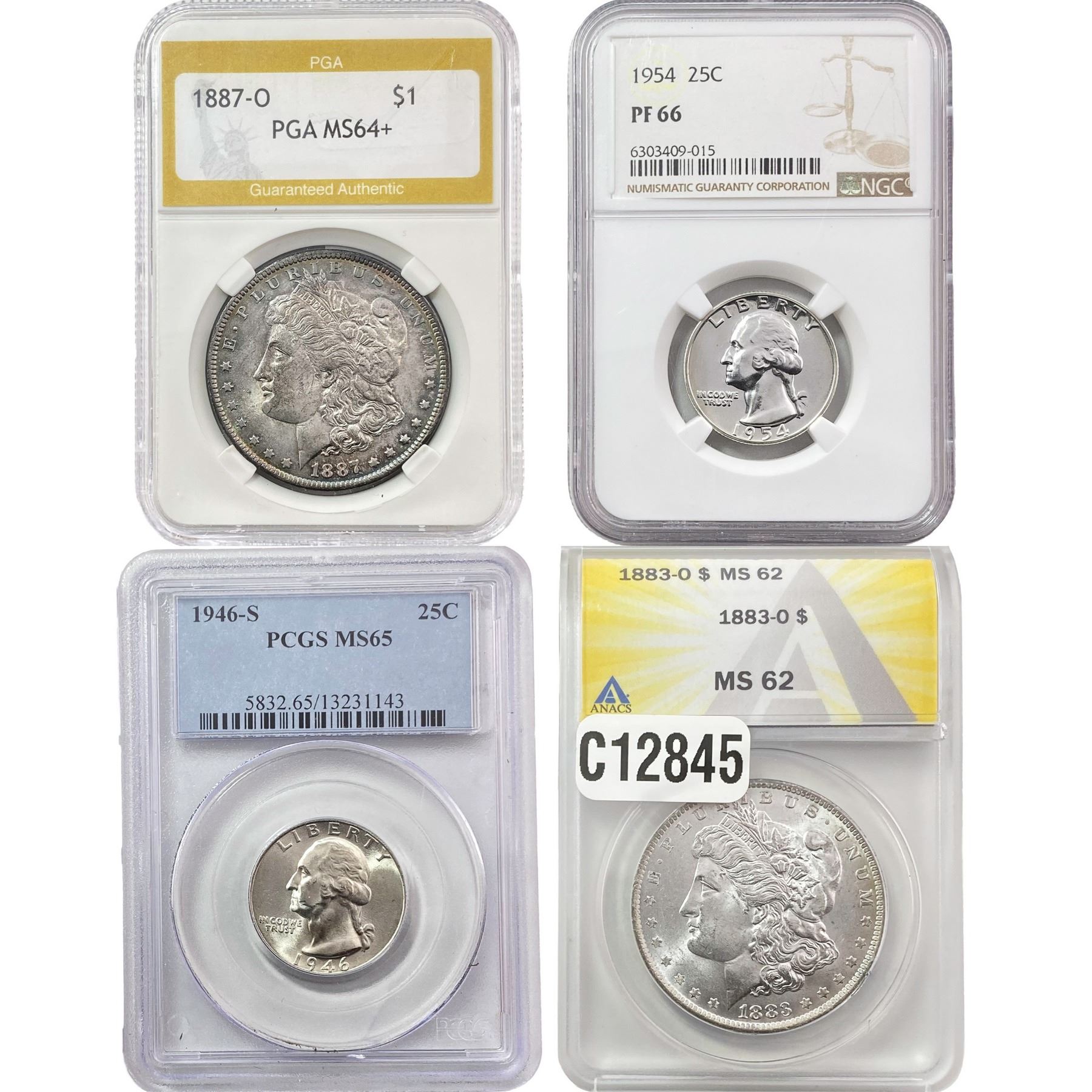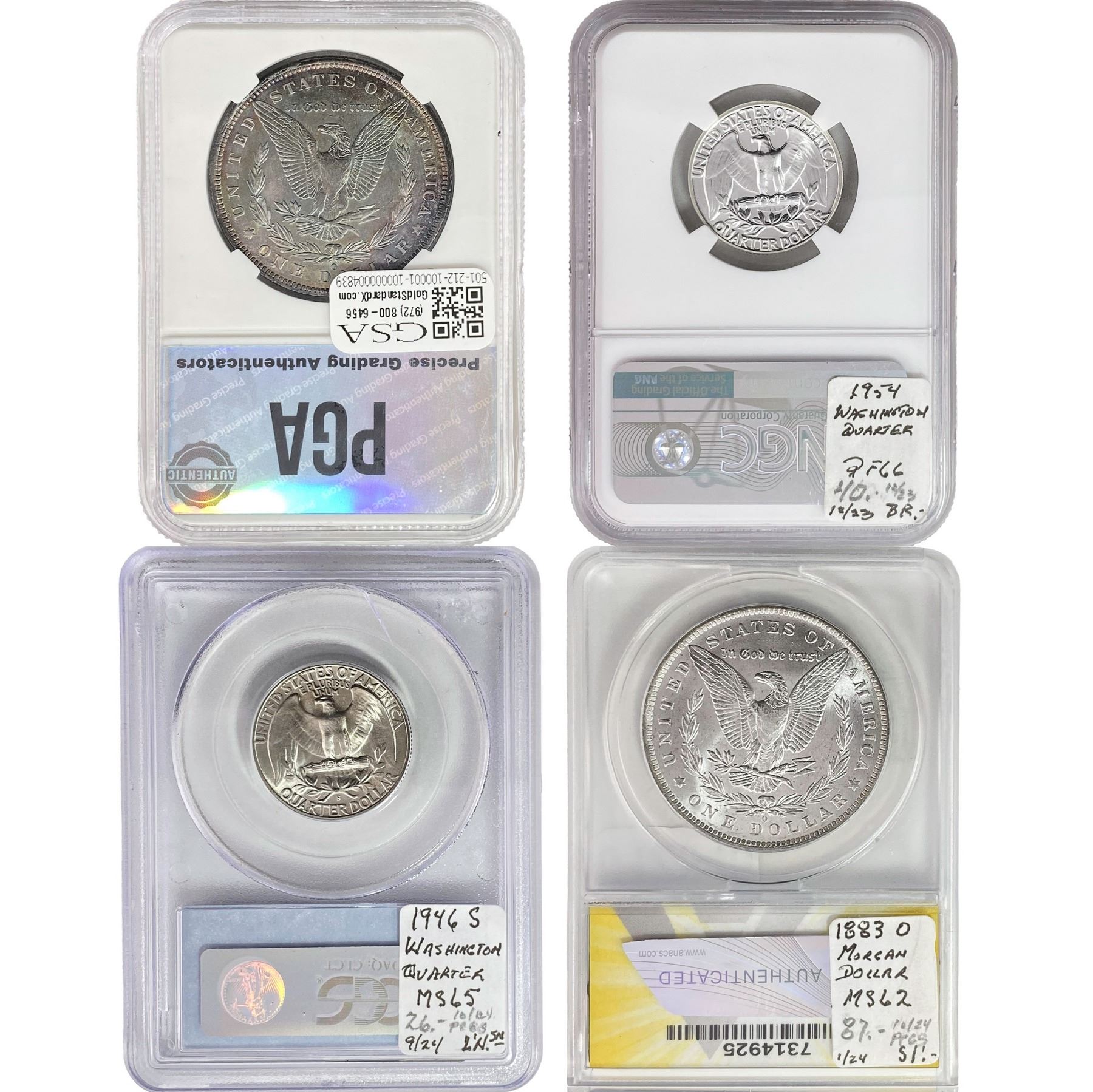 1883-1954 [4] U.S. Silver Dollars & Washington Quarters PCGS/PGA/NGC MS/PF62-66