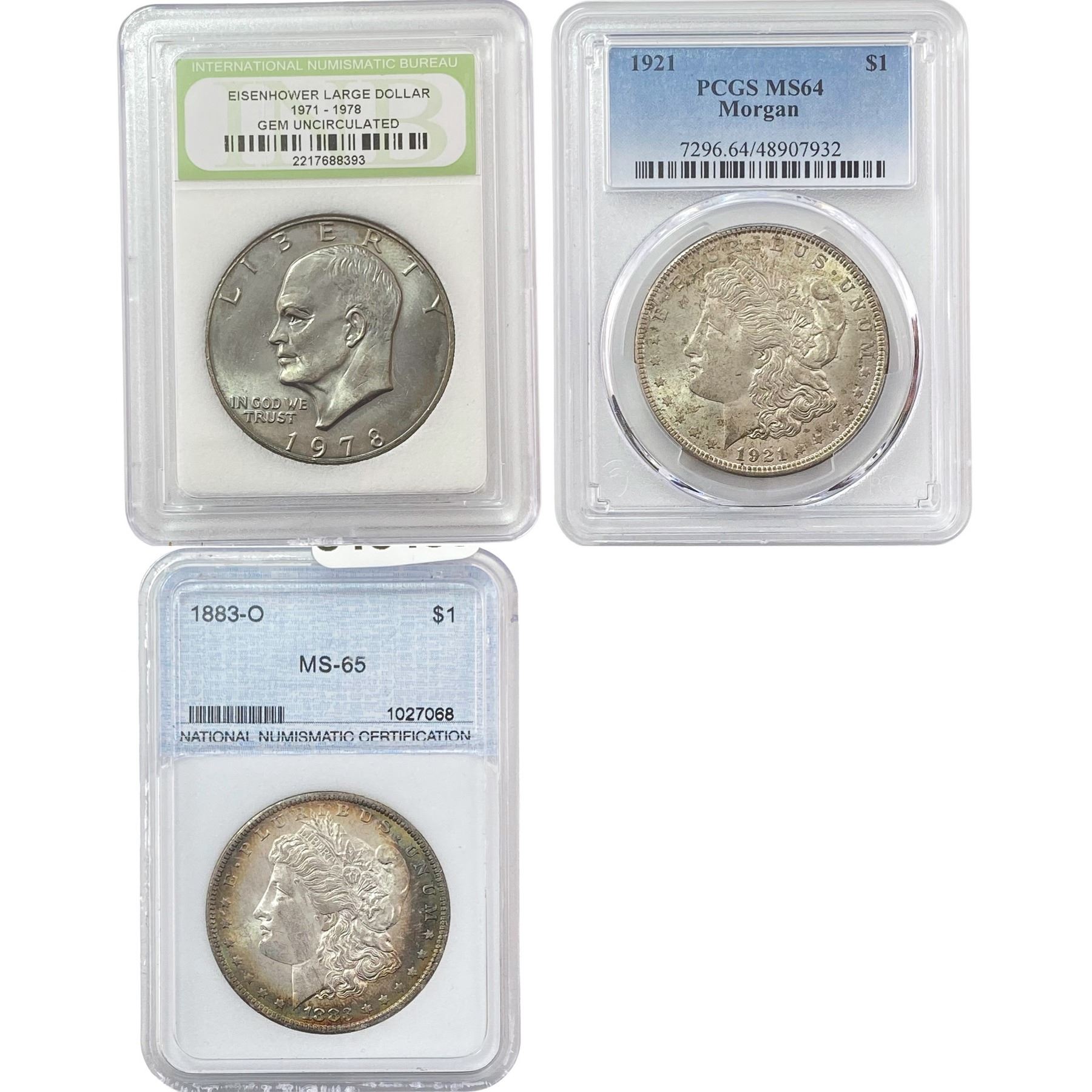 1883-1978 BU US Silver and Clad Dollar Set [3 Coins] PCGS/NNC/INB MS64-65
