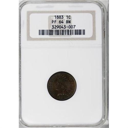 <B>1883 1C PR64 Brown NGC.</B></I> NGC Census: (65/113). PCGS Population (68/75). Mintage: 6,609. Numismedia Wsl. Price for NGC/PCGS coin in PR64: $168. (#2336)<BR><BR><B>Coin Engraver:</B> James B. Longacre<BR><BR><b>Shipping:</b> Coins & Currency (<a target="_blank" href="http://www.heritageauctions.com/common/shipping.php">view shipping information</a>)