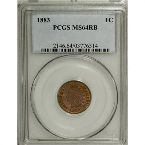 <B>1883 1C MS64 Red and Brown PCGS.</B></I> PCGS Population (175/40). NGC Census: (129/112). Mintage: 45,598,108. Numismedia Wsl. Price for NGC/PCGS coin in MS64: $160. (#2146)<BR><BR><b>Shipping:</b> Coins & Currency (<a target="_blank" href="http://www.heritageauctions.com/common/shipping.php">view shipping information</a>)