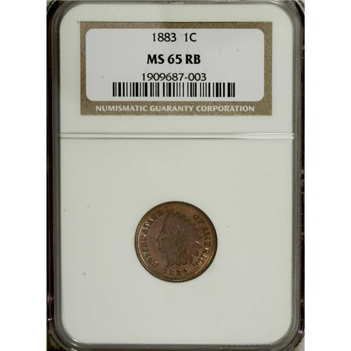 <B>1883 1C MS65 Red and Brown NGC.</B></I> NGC Census: (92/20). PCGS Population (39/0). Mintage: 45,598,108. Numismedia Wsl. Price for NGC/PCGS coin in MS65: $292. (#2146)<BR><BR><b>Shipping:</b> Coins & Currency (<a target="_blank" href="http://www.heritageauctions.com/common/shipping.php">view shipping information</a>)