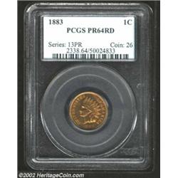 1883 1C PR64 Red PCGS. Golden red surfaces are highlighted by a bold strike. A carbon spot on the reverse rim near 6 o'clock is mentioned, but far from distracting from the eye appeal of this near-Gem cent. Important notice: We expect to be auctioning lots at the rate of 200-250 per hour. Sometimes eBay Premier live bid software cannot keep up with that pace, so we strongly recommend that you place a realistic proxy bid now as insurance to avoid disappointment. Also please note that all Heritage/CAA lots purchased through eBay Premier carry a 20% Buyer's Premium. Please make sure you read the Terms and Conditions.