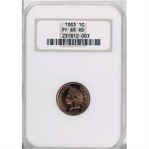 <B>1883 1C PR65 Red NGC.</B></I> This powerfully struck Gem has a straw-gold and apricot obverse. The central reverse displays a few light lilac-red streaks. Infrequent microscopic flecks are of no consequence. In an older generation holder. Census: 10 in 65 Red, 5 finer (3/08).<BR><BR><B>Coin Engraver:</B> James B. Longacre<BR><BR><b>Shipping:</b> Coins & Currency (<a target="_blank" href="http://www.heritageauctions.com/common/shipping.php">view shipping information</a>)