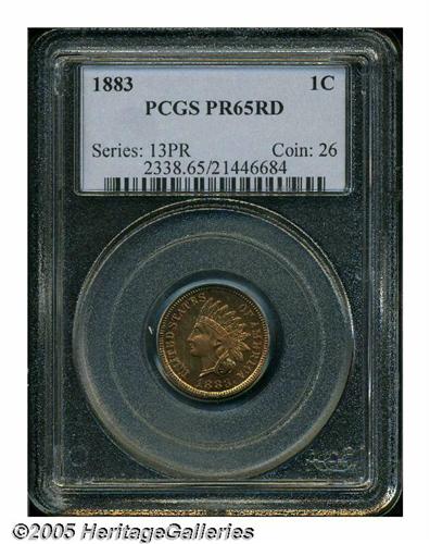 1883 1C PR65 Red PCGS. Fully struck and lustrous,