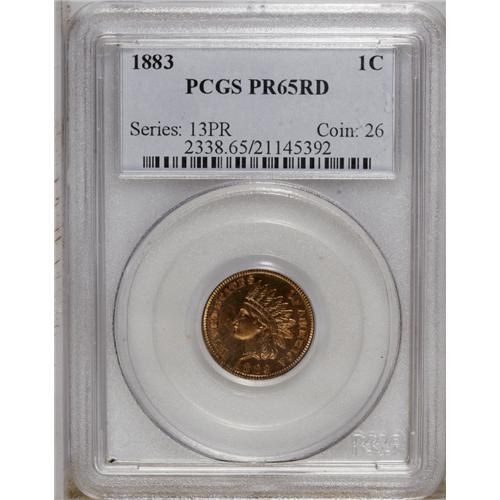 1883 1C PR65 Red PCGS. Glints of apricot-gold compete