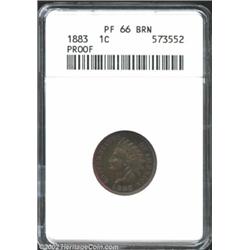 1883 1C PR66 Brown ANACS. Looking at this nicely preserved proof Indian straight on just doesn't do it justice. When held at an angle, emerald-green iridescence bursts forth from the centers, being framed by vivid orange and rose shades.From the Ohio Collection. Important notice: We expect to be auctioning lots at the rate of 200-250 per hour. Sometimes eBay Premier live bid software cannot keep up with that pace, so we strongly recommend that you place a realistic proxy bid now as insurance to avoid disappointment. Also please note that all Heritage/CAA lots purchased through eBay Premier carry a 20% Buyer's Premium. Please make sure you read the Terms and Conditions.