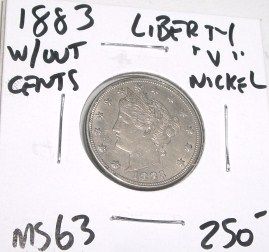 1883 *1ST YEAR* LIBERTY "V" NICKEL *RARE MS-63 HIGH GRADE* RED BOOK VALUE IS $250.00+!! COIN CAME OUT OF SAFE!! ***Coin, Currency & All Items Listed in this auction - Grades, Conditions and Values are not Safe Deposit Coins LLC Responsibilty. Grades, Condition and Values are determined by Consigner(s) & Buyers ONLY