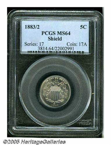 <B>1883/2<5C> MS64 PCGS.</B></I> FS-13.2. A near-Gem, with light rose surfaces, and appealing luster. While a few light striations are noted, this piece exhibits well preserved surfaces. Population: 10 in 64, 7 finer (6/05).
