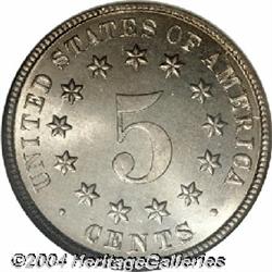 <B>1883/2<5C> MS67 NGC.</B></I> FS-013.3. Remnants of an underdigit 2 are located between the final 8 and 3 in the date. The reverse has a retained die break from 2 to 3 o'clock. A well struck Superb Gem with vivacious cartwheel luster and light gold and lilac patina. A minor mark or two on the prominent 5, otherwise magnificently preserved. The <I>Cherrypicker's Guide</B></I> recognizes four die varieties of the 1883/2, what they have in common is the underdigit is partly between the 83 in the date rather than completely within the 3. In addition to these four rare varieties, some specialists claim Fletcher-7 is also an 1883/2. An extremely high grade for any Shield Nickel, much less the rare 1883/2 overdate. NGC FS-013.3 Population: 3 in 67, 0 finer (9/04). <BR><BR><B>Important notice:</B> Heritage usually auctions material at the rate of 200-250 lots per hour. On some occasions eBay Live bid software or the Internet may not be able to keep up with the pace of the auction. We recommend placing a realistic absentee bid now as insurance to avoid disappointment. Occasionally the auctioneer may eliminate or reject an eBay Live bid, and the auctioneer may also reopen a lot after the close of the eBay live bidding (usually because we missed an audience bid), and may reject your bid even if it shows you as the winning bidder. By bidding via eBay Live, you agree that Heritage may award the lot to another bidder at its sole discretion under the circumstances described above or any other reasonable circumstances. Since eBay bids are not shown to us until we open the lot on the floor, we treat those bids just like floor bids. In most cases the floor responds before the eBay bid is presented to us, due to Internet lag time, so for consistency we have made it a policy that floor bids are always considered first over tie eBay live bids. Also please note that all Heritage lots purchased through eBay Live carry a 20% Buyer's Premium. Please make sure you read the Terms and Conditions before you bid.