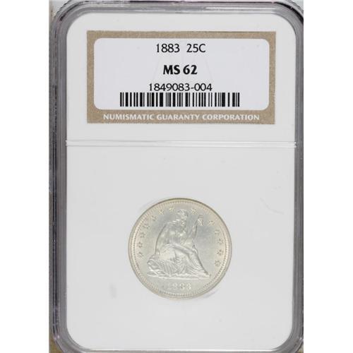 1883 25C MS62 NGC. This is a truly lovely Seated quart