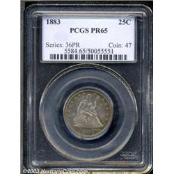 <TABLE cellSpacing=0 cellPadding=0 width="100%" bgColor=#000000 border=0><TBODY><TR><TD width="100%"><TABLE cellSpacing=1 cellPadding=3 width="100%" border=0><TBODY><TR><TD width="100%" bgColor=#79735c><FONT face=arial color=#ffffff size=3><B>Description</B> </FONT></TD></TR><TR><TD width="100%" bgColor=#ffffff><FONT face=arial size=2><B>1883 25C PR65 PCGS.</B></I> Dappled iridescent toning in rich shades of steel-blue, peach, and lemon-yellow blankets each side of this glittering Gem. The low total mintage of this issue make it a popular choice with type collectors. Population: 35 in 65, 25 finer (8/03). </FONT></TD></TR></TBODY></TABLE></TD></TR></TBODY></TABLE><BR><A name=PricesRealized></A><TABLE cellSpacing=0 cellPadding=0 width="100%" bgColor=#000000 border=0><TBODY><TR><TD width="100%"><TABLE cellSpacing=1 cellPadding=3 width="100%" border=0><TBODY><TR><TD width="100%" bgColor=#79735c><A name=PR><FONT face=arial color=#ffffff size=3><B>Previous Prices from Heritage Auctions</B> </FONT></A></TD></TR><TR><TD bgColor=#f6f6ed><TABLE cellSpacing=0 cellPadding=0 width="100%" border=1><TBODY><TR><TD align=middle width="33%"><B>Date</B></TD><TD align=middle width="33%"><B>Service</B></TD><TD align=middle width="33%"><B>Price</B></TD></TR><TR bgColor=whitesmoke><TD width="33%"><B>02/01/2001</B></TD><TD width="33%">PCGS</TD><TD width="33%">$1,667.00</TD></TR><TR bgColor=whitesmoke><TD width="33%"><B>05/01/1999</B></TD><TD width="33%">PCGS</TD><TD width="33%">$2,415.00</TD></TR><TR bgColor=whitesmoke><TD width="33%"><B>10/07/2001</B></TD><TD width="33%">NGC</TD><TD width="33%">$1,006.25</TD></TR><TR bgColor=whitesmoke><TD width="33%"><B>01/01/1995</B></TD><TD width="33%">NGC</TD><TD width="33%">$1,265.00</TD></TR><TR bgColor=whitesmoke><TD width="33%"><B>03/23/2003</B></TD><TD width="33%">NGC</TD><TD width="33%">$1,380.00</TD></TR></TBODY></TABLE></TD></TR><TR><TD bgColor=#ffffff><FONT face=arial size=1 ?>PLEASE NOTE: All prices realized reflect the final hammer price PLUS the buyer's premium in auctions that charge a buyer's premium. Each item has a notation at the top of the listing indicating whether that lot included a buyer's premium. Example: A item that sells with a final hammer price of $100 and a 20% buyer's premium will display with a price realized of $120. All information listed is intended to be as accurate as possible, but errors are possible. Please use this guide carefully and inform us of any inaccuracies. </FONT></TD></TR></TBODY></TABLE></TD></TR></TBODY></TABLE><BR><TABLE cellSpacing=0 cellPadding=0 width="100%" bgColor=#000000 border=0><TBODY><TR><TD width="100%"><TABLE cellSpacing=1 cellPadding=3 width="100%" border=0><TBODY><TR><TD width="100%" bgColor=#79735c colSpan=6><FONT face=arial color=#ffffff size=3><B>Price Guide*</B> </FONT></TD></TR><TR bgColor=#f6f6ed><TD align=middle><B>Grade</B> </TD><TD align=middle><B>Coin World<BR>(Trends)</B> </TD><TD align=middle><B>Numismedia<BR>Retail</B> </TD><TD align=middle><B>Numismedia<BR>Wholesale</B> </TD><TD align=middle><B>Coin<BR>Universe</B> </TD><TD align=middle><B>Heritage<BR>Value Index</B> </TD></TR><TR bgColor=#ffffff><TD align=middle>64</TD><TD align=right>---</TD><TD align=right>$930.00</TD><TD align=right>$740.00</TD><TD align=right>$910.00</TD><TD align=right>$586.67</TD></TR><TR style="FONT-WEIGHT: bold" bgColor=#cccfdd><TD align=middle>65</TD><TD align=right>---</TD><TD align=right>---</TD><TD align=right>$1,525.00</TD><TD align=right>$2,200.00</TD><TD align=right>$1,334.67</TD></TR><TR bgColor=#ffffff><TD align=middle>66</TD><TD align=right>---</TD><TD align=right>---</TD><TD align=right>$2,750.00</TD><TD align=right>$3,750.00</TD><TD align=right>$2,262.50</TD></TR><TR bgColor=#ffffff><TD colSpan=6><FONT size=1>*All information listed is intended to be as accurate as possible, but errors are possible. No item may be returned or refused based on this information which is provided as a service to our customers. You should contact each pricing source directly to determine the accuracy of this information. </FONT></TD></TR></TBODY></TABLE></TD></TR></TBODY></TABLE><BR><TABLE cellSpacing=0 cellPadding=0 width="100%" bgColor=#000000 border=0><TBODY><TR><TD width="100%"><TABLE cellSpacing=1 cellPadding=3 width="100%" border=0><TBODY><TR><TD width="100%" bgColor=#79735c><FONT face=arial color=#ffffff size=3><B>Population Guide</B> </FONT></TD></TR><TR bgColor=#ffffff><TD align=middle><!-- Begin Output of Population Grid--><TABLE cellSpacing=0 cellPadding=0 width="100%" border=0><TBODY><TR><TD vAlign=center><TABLE cellSpacing=0 width="100%" border=1 cellsadding="3"><TBODY><TR><TD vAlign=center><TABLE cellSpacing=0 cellPadding=3 width="100%" border=1><TBODY><TR><TD vAlign=center align=middle bgColor=#f0f1e8 colSpan=2 <CENTER><FONT face=Arial size=2><B>PCGS Pop </B></FONT><CENTER></CENTER></TD><TD vAlign=center align=middle bgColor=#f0f1e8 colSpan=2><CENTER><FONT face=Arial size=2><B>NGC Pop</B></CENTER></FONT></TD></TR><TR><TD vAlign=center><FONT face=Arial size=2>(65)</FONT> </TD><TD vAlign=center align=right><FONT face=Arial size=2>35</FONT> </TD><TD vAlign=center><FONT face=Arial size=2>(65)</FONT> </TD><TD vAlign=center align=right><FONT face=Arial size=2>40</FONT> </TD></TR><TR><TD vAlign=center><FONT face=Arial size=2>(>65)</FONT> </TD><TD vAlign=center align=right><FONT face=Arial size=2>25</FONT> </TD><TD vAlign=center><FONT face=Arial size=2>(>65)</FONT> </TD><TD vAlign=center align=right><FONT face=Arial size=2>35</FONT> </TD></TR></TBODY></TABLE></TD></TR></TBODY></TABLE></TD></TR></TBODY></TABLE><!-- End Output of Population Grid--> Important notice: Heritage usually auctions material at the rate of 200-250 lots per hour. On some occasions eBay Live bid software or the Internet may not be able to keep up with the pace of the auction. We recommend placing a realistic absentee bid now as insurance to avoid disappointment. Occasionally the auctioneer may eliminate or reject an eBay Live bid, and the auctioneer