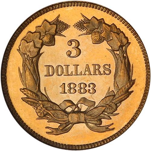 From an original proof mintage of 89, all with the low date logo punch. Perhaps nineteen may still exist in any grade. Extremely rare condition. GEM, not a mark on the face, and only a couple of minor trivial hairlines which do not detract from the superb eye appeal. A highly desirable acquisition for the low mintage gold collector or $3 specialist.