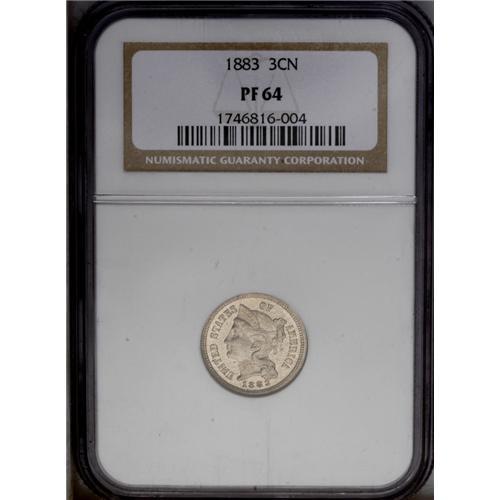 1883 3CN PR64 NGC. Speckled olive-tan patination is jo 1883[3CN] PR64 NGC.