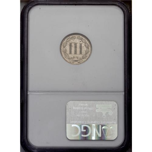 <B>1883<3CN> PR64 NGC.</B></I> Speckled olive-tan patination is joined by streaks of russet on the reverse. Well preserved surfaces display sharply struck devices.
