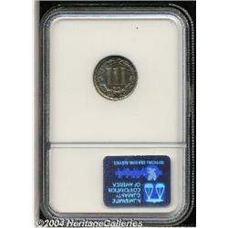 <B>1883<3CN> PR65 NGC.</B></I> Lovely apricot patina endows this sharply struck and unabraded Gem. An original specimen with exceptional eye appeal.<BR><I>From The Dr. Gary Hogg Collection.</B></I> <BR><BR><B>Important notice:</B> Heritage usually auctions material at the rate of 200-250 lots per hour. On some occasions eBay Live bid software or the Internet may not be able to keep up with the pace of the auction. We recommend placing a realistic absentee bid now as insurance to avoid disappointment. Occasionally the auctioneer may eliminate or reject an eBay Live bid, and the auctioneer may also reopen a lot after the close of the eBay live bidding (usually because we missed an audience bid), and may reject your bid even if it shows you as the winning bidder. By bidding via eBay Live, you agree that Heritage may award the lot to another bidder at its sole discretion under the circumstances described above or any other reasonable circumstances. Since eBay bids are not shown to us until we open the lot on the floor, we treat those bids just like floor bids. In most cases the floor responds before the eBay bid is presented to us, due to Internet lag time, so for consistency we have made it a policy that floor bids are always considered first over tie eBay live bids. Also please note that all Heritage lots purchased through eBay Live carry a 20% Buyer's Premium. Please make sure you read the Terms and Conditions before you bid.