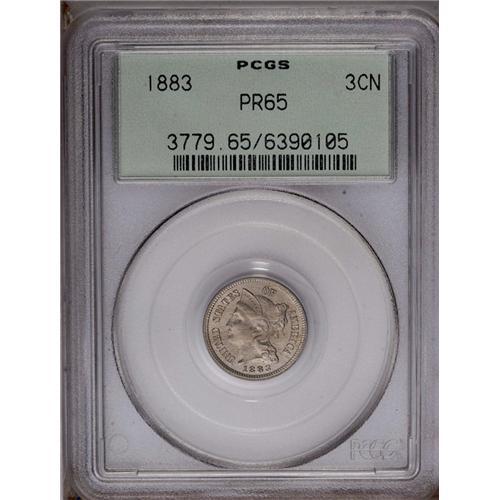<B>1883<3CN> PR65 PCGS.</B></I> A blended medium brown and cream-gray Gem. The satiny surfaces are splendidly preserved, and the strike is intricate. Certified in a green label holder.