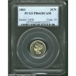 <TABLE cellSpacing=0 cellPadding=0 width="100%" bgColor=#000000 border=0><TBODY><TR><TD width="100%"><TABLE cellSpacing=1 cellPadding=3 width="100%" border=0><TBODY><TR><TD width="100%" bgColor=#79735c><FONT face=arial color=#ffffff size=3><B>Description</B> </FONT></TD></TR><TR><TD width="100%" bgColor=#ffffff><FONT face=arial size=2><B>1883 3CN PR66 Deep Cameo PCGS.</B></I> Proof strikes for the 1883 three cent nickel were one of the largest in the series with 6,609 pieces being struck. While this is the case, this piece appears to be an anomaly for the issue; currently, it is the only Deep Cameo 1883 proof certified by either NGC or PCGS. Not only this, but the piece is attractively covered in golden patina, exhibits the contrast that one would expect of a deep cameo designation, and shows mark-free surfaces that are worthy of the elevated PR66 grade. Overall, a truly amazing, one of a kind specimen that is superior in all facets. Population: 1 in 66, 0 finer (4/03). </FONT></TD></TR></TBODY></TABLE></TD></TR></TBODY></TABLE><BR><A name=PricesRealized></A><TABLE cellSpacing=0 cellPadding=0 width="100%" bgColor=#000000 border=0><TBODY><TR><TD width="100%"><TABLE cellSpacing=1 cellPadding=3 width="100%" border=0><TBODY><TR><TD width="100%" bgColor=#79735c><A name=PR><FONT face=arial color=#ffffff size=3><B>Previous Prices from Heritage Auctions</B> </FONT></A></TD></TR><TR><TD bgColor=#f6f6ed>No Prior Data Recorded </TD></TR><TR><TD bgColor=#ffffff><FONT face=arial size=1 ?>PLEASE NOTE: All prices realized reflect the final hammer price PLUS the buyer's premium in auctions that charge a buyer's premium. Each item has a notation at the top of the listing indicating whether that lot included a buyer's premium. Example: A item that sells with a final hammer price of $100 and a 20% buyer's premium will display with a price realized of $120. All information listed is intended to be as accurate as possible, but errors are possible. Please use this guide carefully and inform us of any inaccuracies. </FONT></TD></TR></TBODY></TABLE></TD></TR></TBODY></TABLE><BR><TABLE cellSpacing=0 cellPadding=0 width="100%" bgColor=#000000 border=0><TBODY><TR><TD width="100%"><TABLE cellSpacing=1 cellPadding=3 width="100%" border=0><TBODY><TR><TD width="100%" bgColor=#79735c colSpan=6><FONT face=arial color=#ffffff size=3><B>Price Guide*</B> </FONT></TD></TR><TR bgColor=#f6f6ed><TD align=middle><B>Grade</B> </TD><TD align=middle><B>Coin World<BR>(Trends)</B> </TD><TD align=middle><B>Numismedia<BR>Retail</B> </TD><TD align=middle><B>Numismedia<BR>Wholesale</B> </TD><TD align=middle><B>Coin<BR>Universe</B> </TD><TD align=middle><B>Heritage<BR>Value Index</B> </TD></TR><TR bgColor=#ffffff><TD align=middle>65</TD><TD align=right>---</TD><TD align=right>---</TD><TD align=right>---</TD><TD align=right>---</TD><TD align=right>$333.00</TD></TR><TR style="FONT-WEIGHT: bold" bgColor=#cccfdd><TD align=middle>66</TD><TD align=right>---</TD><TD align=right>---</TD><TD align=right>---</TD><TD align=right>---</TD><TD align=right>---</TD></TR><TR bgColor=#ffffff><TD align=middle>67</TD><TD align=right>---</TD><TD align=right>---</TD><TD align=right>---</TD><TD align=right>---</TD><TD align=right>---</TD></TR><TR bgColor=#ffffff><TD colSpan=6><FONT size=1>*All information listed is intended to be as accurate as possible, but errors are possible. No item may be returned or refused based on this information which is provided as a service to our customers. You should contact each pricing source directly to determine the accuracy of this information. </FONT></TD></TR></TBODY></TABLE></TD></TR></TBODY></TABLE><BR><TABLE cellSpacing=0 cellPadding=0 width="100%" bgColor=#000000 border=0><TBODY><TR><TD width="100%"><TABLE cellSpacing=1 cellPadding=3 width="100%" border=0><TBODY><TR><TD width="100%" bgColor=#79735c><FONT face=arial color=#ffffff size=3><B>Population Guide</B> </FONT></TD></TR><TR bgColor=#ffffff><TD align=middle><!-- Begin Output of Population Grid--><TABLE cellSpacing=0 cellPadding=0 width="100%" border=0><TBODY><TR><TD vAlign=center><TABLE cellSpacing=0 width="100%" border=1 cellsadding="3"><TBODY><TR><TD vAlign=center><TABLE cellSpacing=0 cellPadding=3 width="100%" border=1><TBODY><TR><TD vAlign=center align=middle bgColor=#f0f1e8 colSpan=2 <CENTER><FONT face=Arial size=2><B>PCGS Pop </B></FONT><CENTER></CENTER></TD><TD vAlign=center align=middle bgColor=#f0f1e8 colSpan=2><CENTER><FONT face=Arial size=2><B>NGC Pop</B></CENTER></FONT></TD></TR><TR><TD vAlign=center><FONT face=Arial size=2>(66)</FONT> </TD><TD vAlign=center align=right><FONT face=Arial size=2>0</FONT> </TD><TD vAlign=center><FONT face=Arial size=2>(66)</FONT> </TD><TD vAlign=center align=right><FONT face=Arial size=2>0</FONT> </TD></TR><TR><TD vAlign=center><FONT face=Arial size=2>(>66)</FONT> </TD><TD vAlign=center align=right><FONT face=Arial size=2>0</FONT> </TD><TD vAlign=center><FONT face=Arial size=2>(>66)</FONT> </TD><TD vAlign=center align=right><FONT face=Arial size=2>0</FONT> </TD></TR></TBODY></TABLE></TD></TR></TBODY></TABLE></TD></TR></TBODY></TABLE><!-- End Output of Population Grid--> Important notice: Heritage usually auctions material at the rate of 200-250 lots per hour. On some occasions eBay Live bid software or the Internet may not be able to keep up with the pace of the auction. We recommend placing a realistic absentee bid now as insurance to avoid disappointment. Occasionally the auctioneer may eliminate or reject an eBay Live bid, and the auctioneer may also reopen a lot after the close of the eBay live bidding (usually because we missed an audience bid), and may reject your bid even if it shows you as the winning bidder. By bidding via eBay Live, you agree that Heritage may award the lot to another bidder at its sole discretion under the circumstances described above or any other reasonable circumstances. Also please note that all Heritage lots purchased through eBay Live carry a 20% Buyer's Premium. Please make sure you read