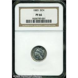 <B>1883 3CN PR66 NGC.</B></I> Sharply struck with highly reflective, impeccably preserved surfaces. The obverse is untoned, while the reverse shows a light coating of streaky apricot-rose color. Lot:5820