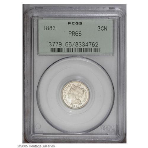 1883 3CN PR66 PCGS. Bright proof surfaces display bare 1883[3CN] PR66 PCGS.
