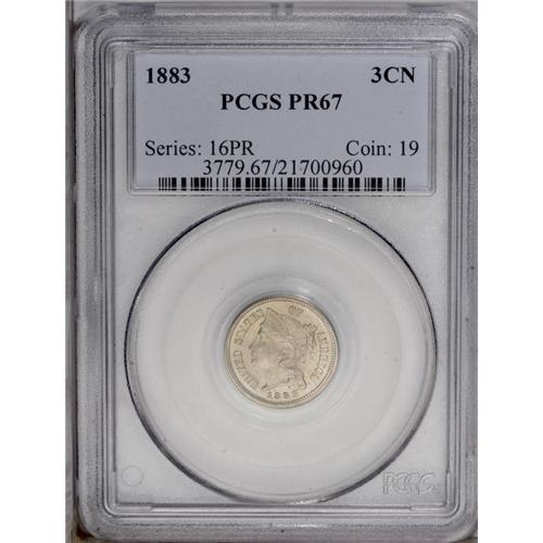 1883 3CN PR67 PCGS. Fully struck and pristine, this lo 1883[3CN] PR67 PCGS.