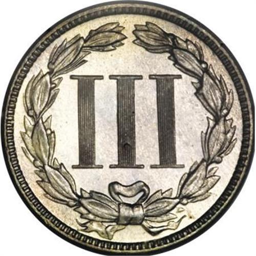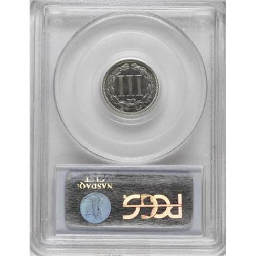 <B>1883 3CN PR67 PCGS.</B></I> This sharply struck specimen displays a thin layer of low-intensity powder-blue, lavender, and beige patina. One tiny fleck in the lower right (facing) reverse quadrant does not detract in the least from the fantastic eye appeal exuded by this coin. Population: 63 in 67, 4 finer (1/08).<BR><BR><B>Coin Engraver:</B> James B. Longacre<BR><BR><b>Shipping:</b> Coins & Currency (<a target="_blank" href="http://www.heritageauctions.com/common/shipping.php">view shipping information</a>)
