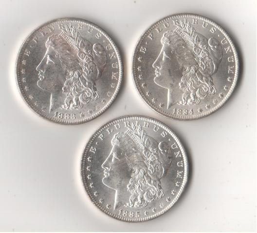 A lot of 3 UNC morgans in date sequence