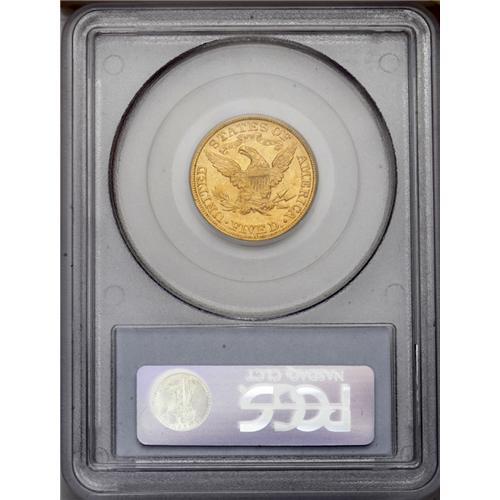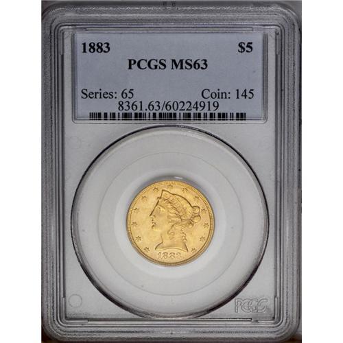 <B>1883<$5> MS63 PCGS.</B></I> Rich reddish-golden color and thick satiny luster are the hallmarks of this attractive example. Numerous small abrasions define the grade. Relatively few Select or better examples of this issue are known. Population: 53 in 63, 12 finer (4/06).