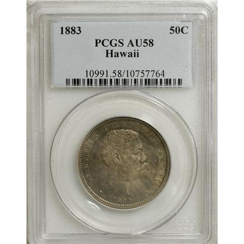 1883 50C Hawaii Half Dollar AU58 PCGS. Deep dove-gray