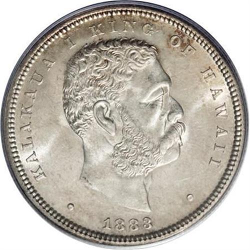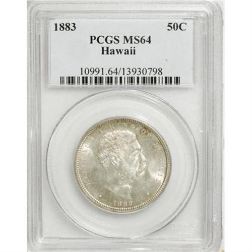<B>1883 50C Hawaii Half Dollar MS64 PCGS. CAC.</B></I> Among the 1883 Hawaiian denominations, the hapalua (or half dollar) is significantly scarcer than the hapaha (or quarter dollar). This lustrous and boldly impressed near-Gem features light peripheral tan toning and exhibits few marks. Population: 43 in 64, 9 finer (11/07).<BR><I>From The Madison Collection.</B></I><BR><BR><b>Shipping:</b> Coins & Currency (<a target="_blank" href="http://www.heritageauctions.com/common/shipping.php">view shipping information</a>)