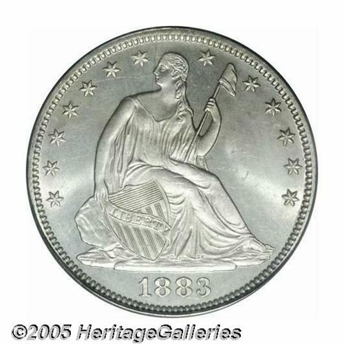 <B>1883<50C> MS66 PCGS.</B></I> A shimmering-white representative with smooth, semi-reflective fields and expectantly bold features. Only 8,000 business strikes were produced in 1883 and, although quantities were hoarded due to its low mintage, Gem and better survivors are nonetheless very scarce. Population: 8 in 66, 1 finer (5/05).