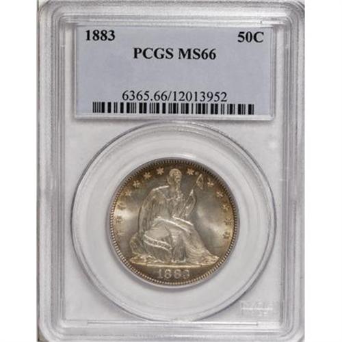 <B>1883 50C MS66 PCGS.</B></I> The 1883 half dollar comes with a relatively small mintage of 8,000 business strikes, and is a challenging issue in the better grades of Mint State. Copper-gold peripheral toning frames the untoned centers of this radiantly lustrous Premium Gem, and a powerful strike leaves sharp definition on the design elements. Some inoffensive obverse marks are mentioned for complete accuracy. Population: 10 in 66, 1 finer (12/07).<BR><BR><B>Coin Engraver:</B> Christian Gobrecht<BR><BR><b>Shipping:</b> Coins & Currency (<a target="_blank" href="http://www.heritageauctions.com/common/shipping.php">view shipping information</a>)